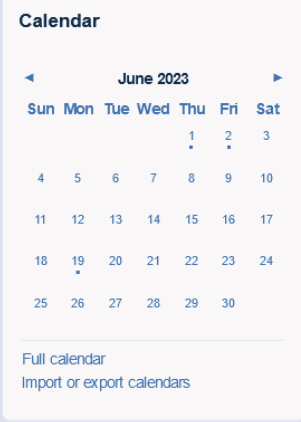 The Block Draw is the collapsible drawer on the right of the screen. It displays the course Calendar.